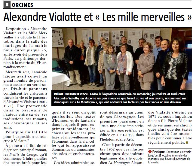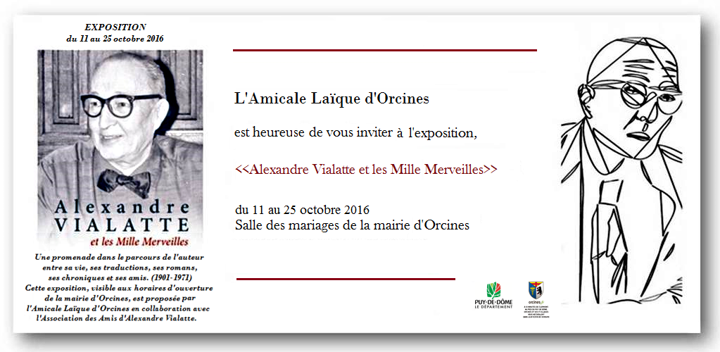 Cette exposition, visible aux horaires d’ouverture de la mairie d’Orcines, est proposée par l’Amicale Laïque d’Orcines en collaboration avec l’Association des Amis d’Alexandre Vialatte