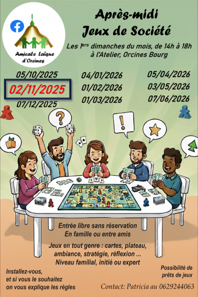 Après Midi Jeux de Société le DIMANCHE 2/11/2025 à l’Atelier