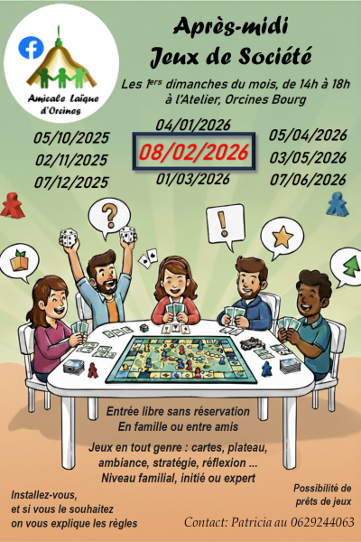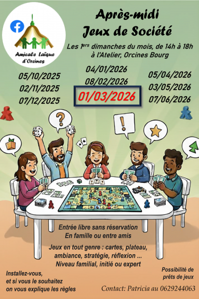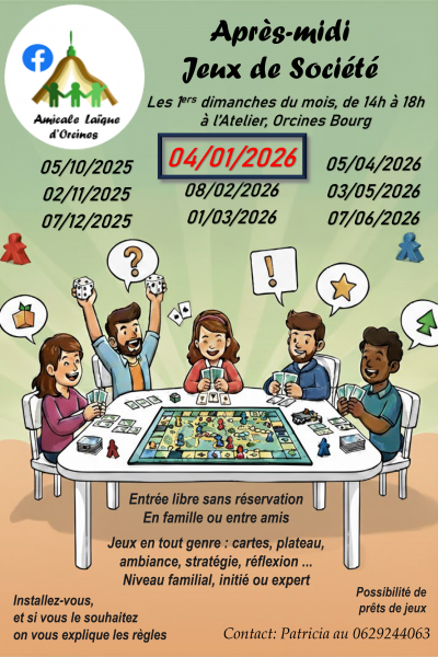 Merci de penser à ramener les jeux empruntés pour qu’ils tournent et qu’ils puissent servir le jour de l’atelier. Si vous êtes dans l’impossibilité de venir à l’atelier, merci de les donner à un amicaliste ou de les déposer chez Patricia (0629244063).