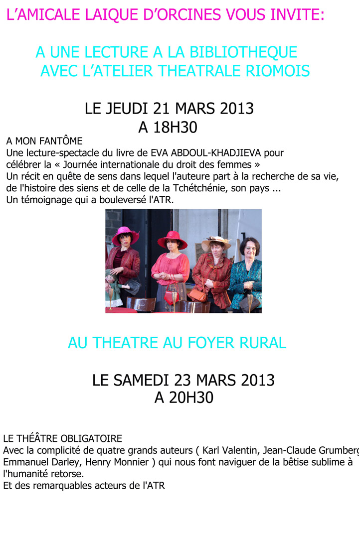 Cette année encore, l’Amicale Laïque d’Orcines a accueilli, pour le plus grand plaisir de tous, l’Atelier Théâtrale Riomois.
